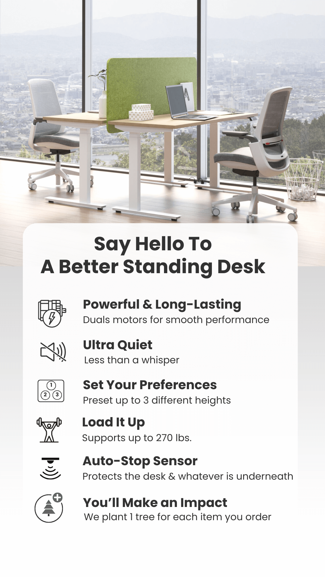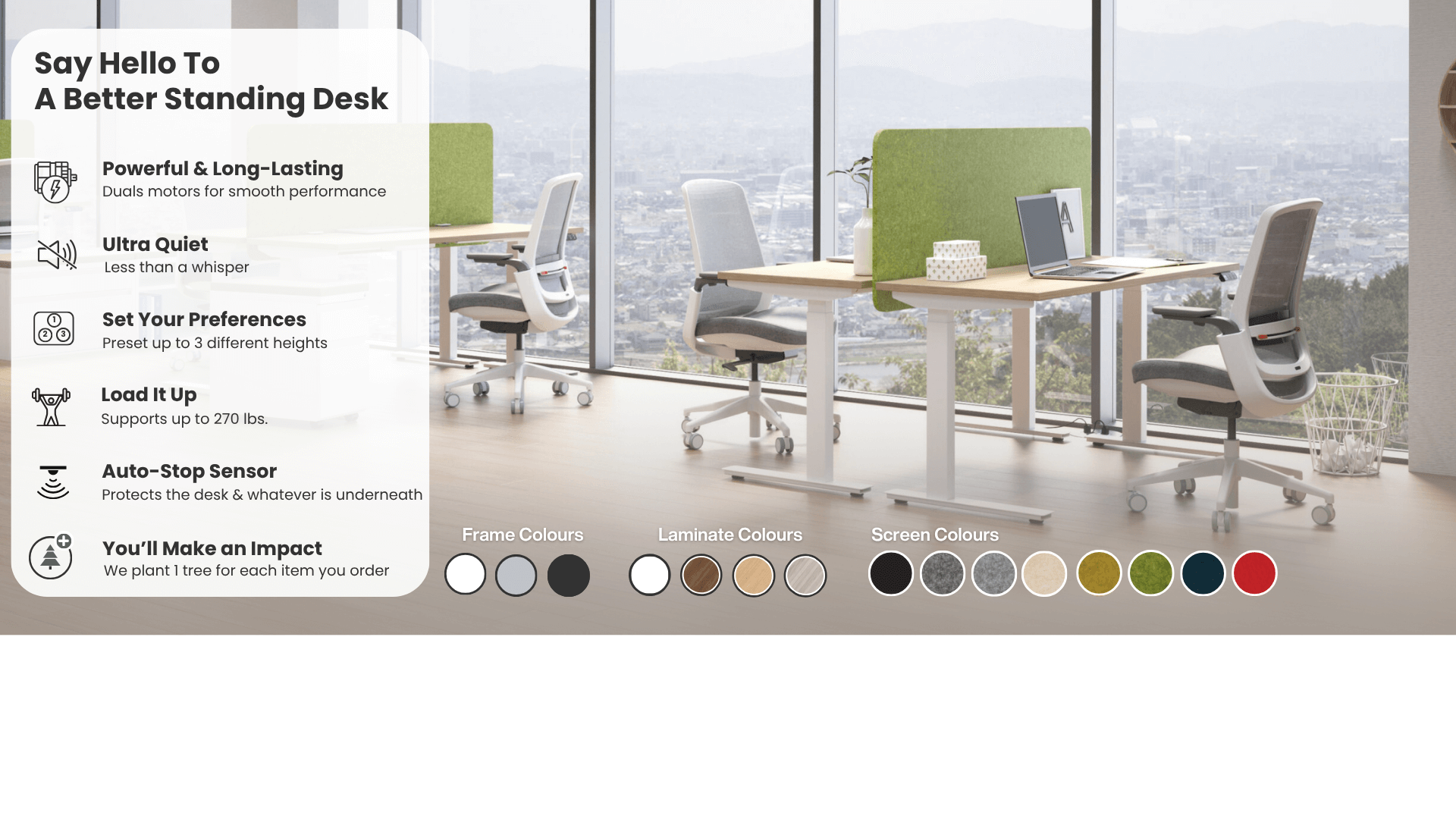 Every Kinetic standing desk is built with a dual-motor lift system, quiet operation, and rock-solid stability. Choose the size, finish, and configuration that fits your space — from home offices to collaborative workstations.
